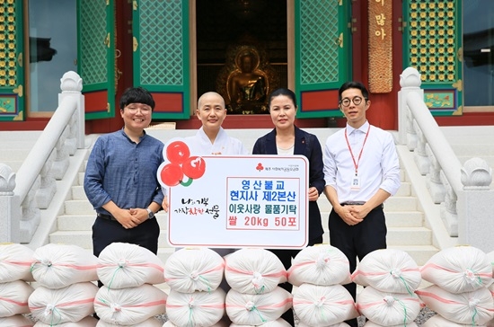 이날 기탁된 쌀은 영산불교 현지사 제2본산 신도들이 정성을 모아 마련한 것으로, 도내 저소득 가정 등에 전달될 예정이다.
