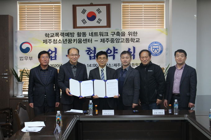 제주중앙고등학교(교장 최범윤)에서는 3월 13일(금) 제주청소년꿈키움센터(센터장 김종준)와 학교폭력예방 활동을 위하여 상호협력 체제 구축을 위한 업무협약을 체결했다.