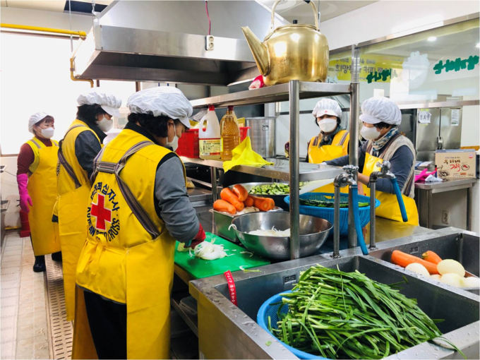 대한적십자사제주특별자치도지사(회장 오홍식)는 4월 14일과 16일 이틀간, 용담1동적십자봉사회(회장 김영철)와 남원적십자봉사회(회장 현미월) 봉사원 30여명이 참여해 저소득 가정 300가정에 사랑의 어멍촐레 밑반찬을 만들어 전달했다.