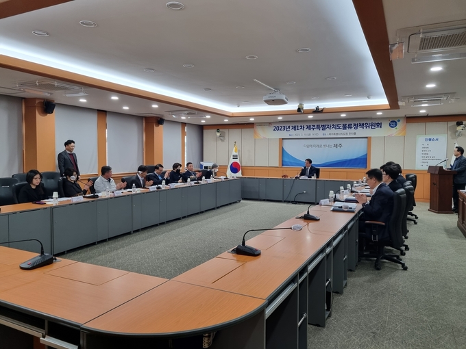 제주도는 10일 오후 제주도청 제1청사 한라홀에서 제1차 물류정책위원회를 열고 2023년 지역물류시행계획(안)을 심의했다.
