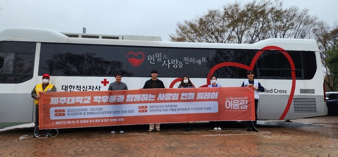 대한적십자사 제주특별자치도혈액원(원장 신건산)은 3월 13일(월)부터 21일(화)까지 총 6일간(금 ~ 일 제외) 제주시 아라일동에 위치한 제주대학교 아라캠퍼스에서 제55대 어울림 총학생회(회장 박주영, 부회장 백승범) 및 단과대 학생회가 주최하는 ‘제주대학교 학우들과 함께하는 사랑의 헌혈릴레이’를 실시했다고 밝혔다.