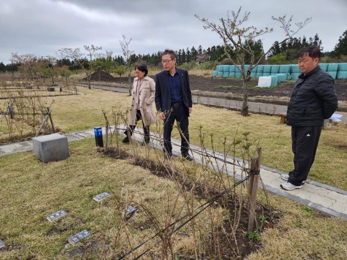 안우진 제주시 부시장은 4월 6일(목) 제주시 용강동 소재 용강별숲공원 자연장지 현장을 방문해 시설점검 및 이용상황을 점검하고 관계자들을 격려했다.