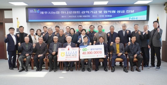 한편, 제주시농협은 올해 11월에도 공익기금 3천만 원을 기탁하며 지역사회 복지 증진을 위한 꾸준한 나눔을 실천해오고 있으며 금번 기부를 통해 2025년 한 해 총 1억 원을 제주사랑의열매에 기탁했다.