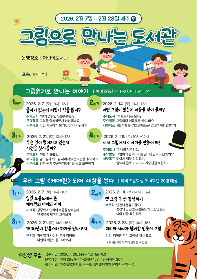 문정희 탐라도서관장은 “겨울방학 동안 어린이들이 도서관에서 의미있는 시간을 보내며 문해력과 감수성을 함께 키우는 계기가 되길 바란다”고 말했다.