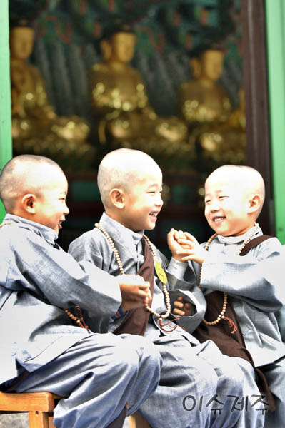 | 즐거워하는 동자승들ⓒ 김영하 기자 |
