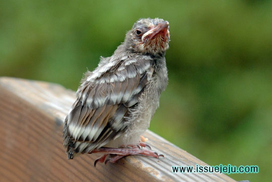 새끼직박구리가 날아보려고 날개짓을 하고 있다. ⓒ 김영하 기자 |