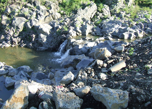 | ▶ 돌더미에 묻혀져 가는 그림과도 같이 아름다운 작은폭포가 너무나 아깝다.ⓒ j.w. Baek |