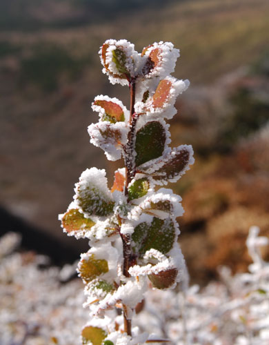 나뭇잎에 맺힌 서리 ⓒ 김영하 기자 |