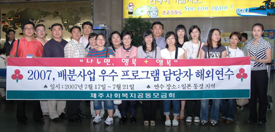 제주특별자치도사회복지공동모금회(회장 한동휴)는 2006년도 신청사업 중에서 우수프로그램을 선정하여 프로그램 담당자에게 일본의 사회복지 시설 및 기관을 중심으로 해외연수를 실시한다.