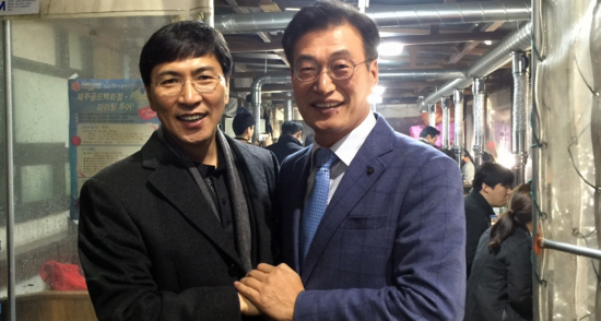 안희정 충남지사와 문대림 예비후보(더불어민주당, 서귀포시)가 만났다. 안 지사와 문 예비후보는 17일, 제주시에서 만나 덕담을 나누며 격려했다.