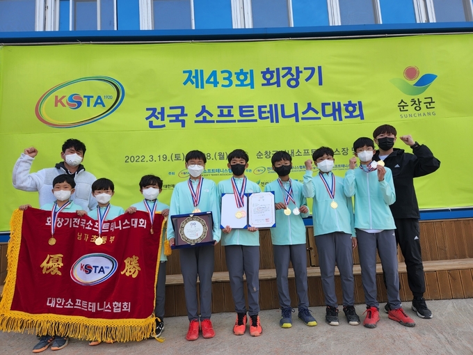아라초등학교(교장 임진혜)는 2022년 3월 26일(토)부터 3월 28일(월)까지 전북 순창공설운동장에서 열린 제43회 전국소프트테니스대회에 참가해 남자초등부 단체전 부문 우승, 개인 복식 부문 2위, 3위의 성적을 거뒀다.