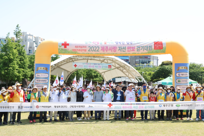 대한적십자사제주특별자치도지사(회장 오홍식)는 5월 21일 도남동 시민복지타운 광장에서 내외빈, 자원봉사자, 행사 참여자 등 800여명이 참가한 가운데 ‘2022 제주사랑 자선 만보 걷기대회’ 론칭식을 개최했다.