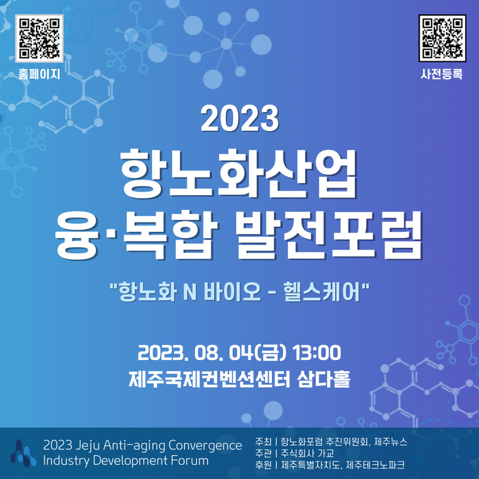제주 항노화산업 융복합 발전포럼 추진위원회와 제주뉴스가 공동 주최하고, 제주특별자치도와 제주테크노파크가 후원하며 ㈜가교가 주관한다.