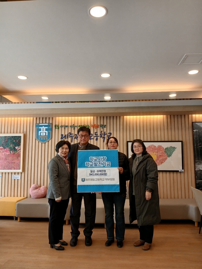 제주제일고등학교 학부모회(회장 강미애)는 지난 24일 제주제일고 일맥제 축제 기간 중 교내 부스에서 학부모와 교직원을 대상으로 농산물 및 가공품을 판매한 수익금 200만원을 학교발전기금으로 기탁하였다.