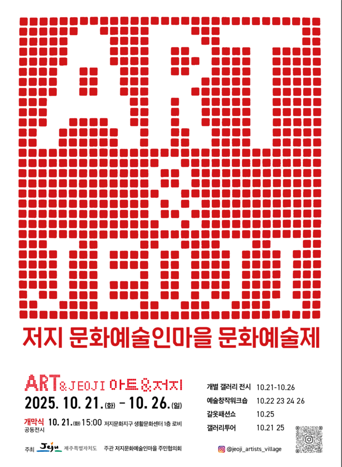 제주특별자치도는 21일부터 26일까지 저지 문화예술인마을에서 ‘아트 앤 저지(ART&JEOJI) 2025’ 행사가 열린다고 밝혔다.