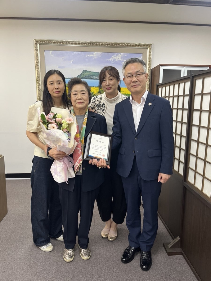 제주도는 24일 오후 도청 행정부지사실에서 이신숙 씨에게 감사패를 전달했다.