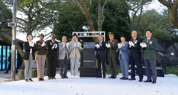 오영훈 지사는 “지난해 이곳에 레클리스 동상을 세운 것은 단순히 역사를 기억하기 위해서만이 아니다”라며 “우리를 이 땅에 존재하게 해준, 한국전쟁에 참전한 유엔 국가들의 헌신, 한미 동맹을 기억하고 기리기 위해서”라고 강조했다.
