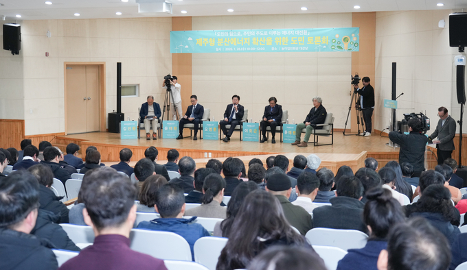 제주도는 28일 제주농어업인회관에서 도민과 전문가 200여 명이 참석한 가운데 ‘제주형 분산에너지 확산 도민 토론회’를 열고 도민 생활 속 에너지 전환 실천 방안을 논의했다.