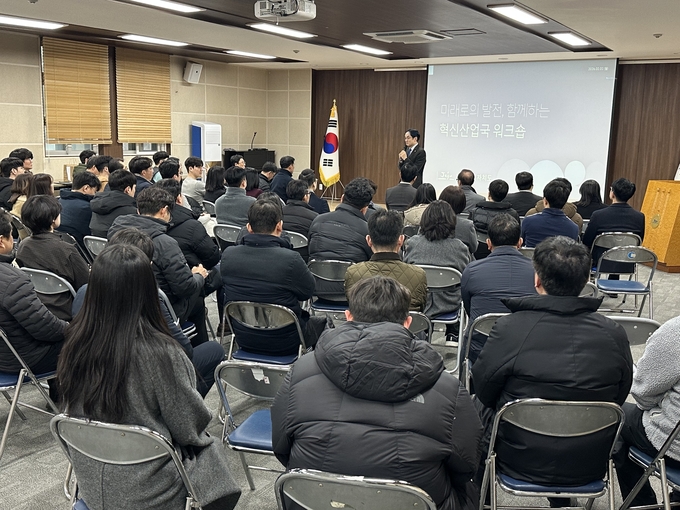 이날 워크숍에는 혁신산업국장을 비롯해 각 과장 및 직원 등 전 직원이 참석한 가운데, 국 운영방향 공유, 혁신 시책 추진 계획 공유, 부서별 협업 정책 발표, 자유발언 등이 진행됐다.