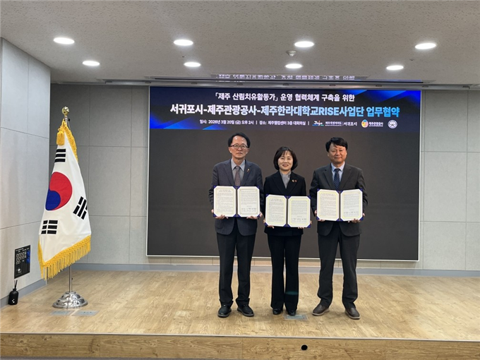 서귀포시는 지난 20일 제주관광공사(사장 고승철), 제주한라대학교 RISE사업단과 함께 ‘제주 산림치유활동가 운영 협력체계 구축을 위한 업무협약’을 체결했다고 밝혔다.