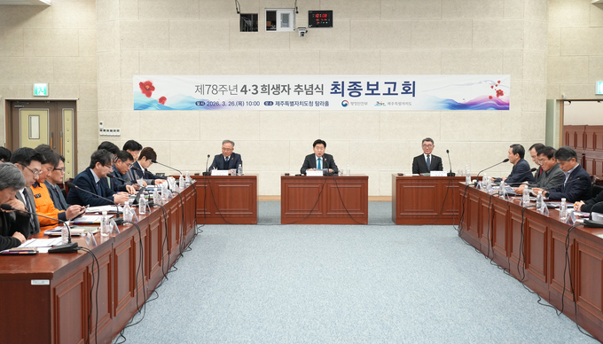 제주특별자치도가 ‘제78주년 4·3희생자 추념식’을 앞두고 26일 오전 도청 탐라홀에서 준비상황 최종보고회를 열고, 안전하고 품격 있는 국가추념식 개최를 위한 분야별 준비상황을 최종 점검했다.