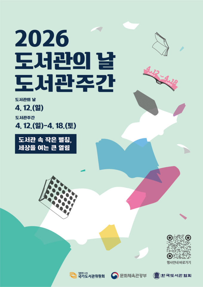 서귀포시는 도서관의 날(4월 12일)과 도서관 주간(4월 12일~18일)을 맞아 ‘도서관 속 작은 펼침, 세상을 여는 큰 열림’을 주제로 시민 참여형 독서·문화 행사를 운영한다.