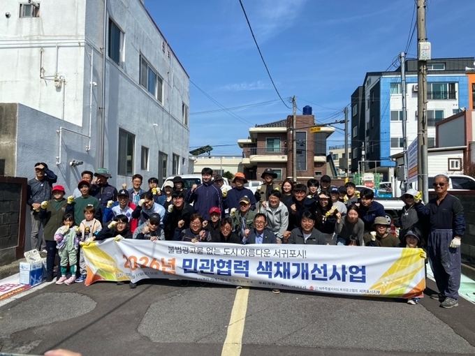 색채개선사업은 도시 미관을 저해하는 노후 담장 및 건물 외벽 등에 색채를 정비하는 사업으로서 쾌적하고 안전한 도시이미지 조성을 위하여 2016년도부터 옥외광고협회 서귀포시지부와 도시과 직원이 협력하여 매년 추진 중인 사업이다.