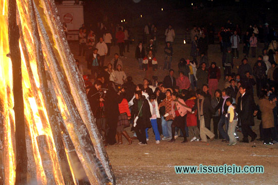관광객들과 시민들이 달집을 가운데 두고 강강수월래를 하고 있다. ⓒ 김영하 기자 |