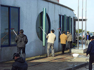 이날 봉사화동에 참가한 직원 38명은 시설 유리창 물청소와 잔디밭 김매기 등을 전개했다.
