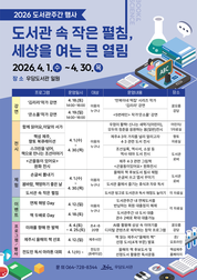 우당도서관은 도서관의 날(4월 12일)과 도서관 주간(4월 12일~18일)을 맞아 4월 1일부터 30일까지 도서관 일원에서 강연, 체험, 전시 등 다채로운 독서·문화 행사를 운영한다. 이번 행사는 ‘도서관 속 작은 펼침, 세상을 여는 큰 열림’을 주제로 마련됐다. 책을 통해 인류의 지식과 기술을 나누고, 사람과 사람을 잇는 ‘큰 열림’으로 확장하자는 의미를 담아 시민들이 함께 즐길 수 있는 다양한 프로그램이 진행된다. 도서관 주간의 대표 행사로는 독자와 작가를 직접 연결하는 작가 강연이 개최된다. 김리리 작가의 ‘만복이네 떡집 시리즈’와 은소홀 작가의 ‘5번 레인’을 주제로 한 강연이 진행돼 시민들에게 특별한 독서 경험을 선사할 예정이다. 이와 함께 우당도서관 대표 프로그램인 ‘제주시 올해의 책 선포’, ‘전도민 독서마라톤 대회’, AI를 활용해 나만의 책을 창작하는 ‘미래를 향해 한 발짝’ 등 다양한 독서·문화 프로그램도 운영된다. 도서관 로비에서는 ‘제주시 올해의 책 필사로 손글씨 뽐내기’, ‘봄바람, 책멍하기 좋은 날’, ‘도서관 속 작은 펼침(도서관 빙고)’, ‘곤을동이 있어요’ 원화 전시, ‘스크린을 넘어, 책으로 만나는 조선이야기’ 등 다채로운 전