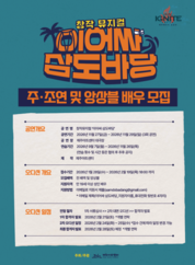제주아트센터는 올해 11월 개최 예정인 창작뮤지컬 ‘이어싸 삼도바당’에 참여할 배우를 모집하고, 공연 오디션을 진행한다. 이번 모집은 주·조연 및 앙상블 배우를 선정하는 것으로 구체적인 배역은 오디션을 통해 확정한다. 지원 자격은 만 19세 이상의 성인 배우로 연기·안무·노래 등 공연에 필요한 자…