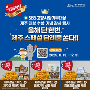제주특별자치도는 ‘제1회 SBS 고향사랑기부대상’ 광역시도 부문 대상 수상을 기념해 13일부터 연말까지 ‘올해 단 한 번, 제주 스페셜 감사 답례품’을 한시적으로 출시한다. 제주도는 고향사랑기부제를 선도적으로 이끈 공로를 인정받아 대상을 받았다. 시상식은 13일 서울 동대문디자인플라자(DDP)…
