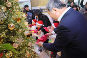 제주시는 지난 15일(월) 시청 본관 현관 입구에서 공직자와 어린이 등이 참여한 가운데 희망의 성탄트리 점등식을 개최했다. 이날 점등식은 제주 출신 가수 주낸드의 식전 공연으로 시작돼 연말 분위기를 한층 끌어올렸다. 이어 김완근 제주시장을 비롯한 직원 대표와 제주시청 직장어린이집 원아들이 함께 크리스마스 트리에 동백을 걸며 점등을 진행했다. 또한 희망의 성탄트리 점등식을 축하해 주기 위해 어린이집 원아 9명이 크리스마스 캐롤을 선보였으며, 참석자들도 함께 노래를 부르며 연말의 따뜻한 분위기를 채워 나갔다. 김완근 제주시장은 “제주시의 겨울을 따뜻하게 밝혀줄 크리스마스 점등식을 함께 맞이하게 되어 매우 뜻깊다”고 전하면서, “우리가 밝히는 이 불빛은 우리 지역 모든 이웃에게 전하는 격려의 메시지이며, 제주시 곳곳에 나눔과 따뜻함으로 물들어 사랑으로 가득한 연말이 되기를 기대한다”라고 말했다.