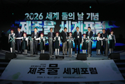 제주특별자치도와 제주개발공사는 18일 제주국제컨벤션센터(ICC)에서 ‘2026 세계 물의 날 기념식 및 제주물 세계포럼’을 열고, 기후위기 시대 제주가 나아갈 지속가능한 물 관리 모델의 청사진을 제시했다. 유엔(UN)이 정한 세계 물의 날(3월 22일)을 기념해 마련된 이번 행사에는 오영훈 지사, 김좌관 국가물관리위원장, 양병우 제주도의회 부의장, 김광수 제주도교육감, 백경훈 제주개발공사 사장, 위성곤 국회 기후위기특별위원장을 비롯해 물 분야 전문가와 환경단체 등 300여 명이 참석했다. 기념식에서는 물 보전‧관리에 기여한 유공자에 대한 도지사 표창과 청소년 대상 물사랑 공모전 수상자 시상식이 진행됐으며, 제주극단 마로와 제주울림어린이합창단이 ‘지속가능한 물’을 주제로 기념공연을 선보였다. 오영훈 지사는 인공지능(AI) 등 첨단 기술을 물 관리에 접목하고, 제주 특유의 공동체 문화를 통해 수자원을 함께 지키겠다는 의지를 밝혔다. 오 지사는 “지하수는 제주의 삶과 지속 가능성을 지탱하는 대체 불가능한 핵심 자원”이라며 “디지털 기술과 지역사회 참여를 결합한 제주형 물 관리 모델을 통해 제주를 세계적인 물 협력의 중심지로 만들겠다”고 강조했다. 이어 “제주의 물