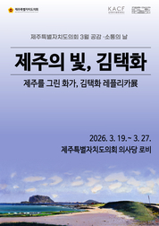 제주특별자치도의회(의장 이상봉)는 오는 3월 19일부터 27일까지 도의회 의사당 로비에서 제주 출신 화가 김택화(1940~2006) 화백의 작품을 소개하는 ‘제주의 빛 김택화’ 레플리카전을 개최한다. 이번 행사는 「3월 공감·소통의 날」 행사와 연계해 마련됐으며, 도민 누구나 무료로 관람할 수 있다. 레플리카전은 원작을 정밀하게 복제한 작품을 전시하는 형태로, 김택화 화백의 대표 작품세계를 보다 가까이에서 감상할 수 있도록 기획됐다. 19일 오전 11시에 도의회 도민카페에서 열리는 개막식에는 이승연 김택화미술관장이 김택화 화백의 생애와 예술세계를 소개하고, 작품 이해를 돕기 위한 도슨트 프로그램도 진행할 예정이다. 김택화 화백은 제주에서 태어나 홍익대학교 서양화과를 졸업한 뒤 고향인 제주에서 활동하며 평생 제주 풍경을 화폭에 담은 제주 대표 서양화가다. 특히 한라산 소주 라벨의 원작자로도 널리 알려져 있으며, 제주 자연의 색채와 풍경을 화폭에 담아 제주 미술의 정체성을 보여준 작가로 평가받는다. 또한 제11회 대한민국미술전람회 서양화 부문 특선을 수상했으며, 한국 최고의 추상표현주의 그룹 ‘ORIGIN(오리진)’창립 멤버로 활동했다. 제주대학교 미술학과 출강