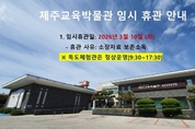 제주교육박물관(관장 김명기)은 오는 10일 소장자료의 안전한 보존과 쾌적한 관람 환경 조성을 위해 임시 휴관을 실시한다. 박물관은 소중한 교육 자료의 훼손을 방지하고자 매년 두 차례 문화재 전문 약제를 활용한 보존 소독을 진행하고 있다. 이번 소독 대상은 수장고와 전시실에 보관된 약 3만 9000여 건의 자료를 비롯해 야외전시장과 초가집 전체를 포함한다. 소독 작업이 진행되는 10일 당일에는 전시실 및 야외전시장 초가집 관람이 제한된다. 다만 관리동에 위치한 독도체험관은 평소와 같이 정상적으로 관람할 수 있다. 제주교육박물관 관계자는 “소중한 교육 유산을 보존하고 관람객에게 더욱 안전한 환경을 제공하기 위한 필수적인 조치인 만큼, 임시 휴관에 따른 관람객들의 넓은 양해를 부탁드린다”고 말했다.
