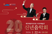 서귀포시는 오는 1월 22일(목) 19시 30분 서귀포예술의전당 대극장에서 ‘제주특별자치도립 서귀포예술단 2026 신년음악회’를 개최한다. 이번 공연은 기운차게 한 해를 시작하는 관객들의 시작을 응원하는 의미로 2026년을 상징하는 적토마의 역동적인 기운을 담아 다양한 장르의 무대로 준비했다. 먼저 1부의 첫 시작은 서귀포관악단 이동호 상임지휘자의 손짓에 맞춰 이동훈의 ‘교향시 한라산 <백록담>(2025 제주국제관악작곡콩쿠르 입상곡)’으로 공연의 문을 연다. 백록담 전설에서 영감을 받아 만들어진 곡으로 한라산의 정경이 음의 선율 그대로 그려지는 작품이다. 이후 현재 국내외에서 전문 연주자로 활발하게 활동 중인 바리톤 김지욱과 함께 오페라 카르멘의 ‘투우사의 노래’와 뮤지컬 레미제라블의 ‘별’ 두 곡을 함께한다. 바리톤의 강렬한 목소리가 돋보이는 두 곡을 통해 신년의 기운찬 힘을 관객들에게 전달할 예정이다. 네 번째 무대로는 현 한국예술종합학교 전통예술원 음악과 교수이자, (사)세계판소리협회 이사장인 소리꾼 채수정과, 국가무형유산 제5호 판소리 고법 이수자 고수 김대규가 서귀포관악단과의 협연으로 흥보가 중 ‘박 터지는 대목’을 연주한다. 관악단과 판