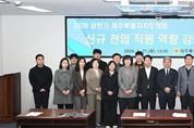 제주특별자치도의회 의회운영위원회(위원장 임정은)는 지난 1월 27일(화), 도의회 의사당 소회의실에서 2026년 상반기 정기인사로 전입한 직원 및 실무 역량 배양이 필요한 직원들을 대상으로 ‘역량 강화 워크숍’을 개최했다. 이번 워크숍은 신규 전입 직원들이 의회 운영 시스템을 빠르게 이해하고, 전문적인 의정활동 지원을 위한 실무 역량을 갖출 수 있도록 돕기 위해 마련됐다. 교육은 의회 내부 전문가가 강사로 나서 실무 밀착형 커리큘럼으로 진행되었다. 주요 내용은 ▲느영나영 함께 알아가는 도의회 가이드, ▲보도자료 작성법 마스터 가이드, ▲의정자료센터 활용법 등이며, 자유로운 질의응답을 통해 업무 궁금증을 해소하는 시간도 가졌다. 임정은 의회운영위원장은 “이번 워크숍은 새로운 환경에서 업무를 시작하는 직원들이 의회 체계에 안정적으로 적응하도록 돕는 마중물이 될 것”이라며, “앞으로도 직원 전문성 강화를 통해 도민 중심의 효율적인 의정 지원 체계를 구축하고 소통을 강화해 나가겠다”고 밝혔다. 한편, 제주특별자치도의회는 앞으로도 정기적인 교육 프로그램과 워크숍을 운영하여 직원들의 직무 역량을 고도화하고, 이를 바탕으로 도민의 목소리를 대변하는 ‘민생의회’ 구현에 최