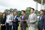 제주특별자치도는 12일 오후 1시 국회에서 국민의힘 장동혁 대표의 제주4·3 역사 왜곡 발언을 규탄하는 기자회견을 개최했다고 밝혔다. 오영훈 제주도지사, 김한규 더불어민주당 제주도당 위원장, 김창범 제주4·3희생자유족회 회장이 참석한 이날 기자회견에서는 “제주도민과 4·3 역사를 짓밟고 극우정치 본색을 드러내는 국민의힘을 규탄한다”고 강조했다. 장동혁 대표는 최근 4·3을 ‘공산폭도들에 의한 폭동’으로 규정한 영화 ‘건국전쟁2’를 관람한 후 “역사를 바라보는 다양한 관점을 모두 존중돼야 한다”고 발언해 논란을 일으켰다. 참석자들은 “아직도 살아있는 4·3 유족의 이름으로, 제주도민의 이름으로 묻겠다”며 국민의힘 지도부에 4가지 질문을 제기했다. △영화진흥위원회에서도 독립영화로 인정하지 않은 극우 선전물을 추석날 관람한 저의가 무엇인지 △다양한 관점 존중이 4·3을 공산폭도 폭동으로 보는 관점을 존중한다는 의미인지 △윤석열 대통령과 장 대표가 공산폭도 폭동을 기념하려 했던 것인지 △특별법과 국가추념일 지정을 모두 폐지하자는 것인지 등이다. 이어 “망언에 대해 사죄하고, 추가 관람을 중단하지 않으면, 제주도민과 4·3유족은 헌법과 법률을 위반한 것에 반드시 책임