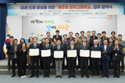 제주의 고등학생들이 졸업 후 일자리를 찾아 섬을 떠나지 않고, 고향에서 신재생에너지 전문가로 성장할 수 있는 길이 열렸다. 제주특별자치도와 제주특별자치도교육청은 4일 오후 2시 탐라홀에서 제주대학교, 두산에너빌리티, 제주에너지공사, 서귀포산업과학고등학교와 「제주형 협약고등학교(에너지 분야)」 운영을 위한 업무협약을 체결했다. 이번 협약은 교육부의 지역 정주 기반 인재 양성 정책 기조에 맞춰, 학교가 지역 산업 수요에 부합하는 인재를 양성하고 기업은 이를 채용·육성해 제주에 정착시키는 선순환 구조를 구축하기 위해 마련됐다. 「제주형 협약고등학교」는 지역 전략산업을 중심으로 도와 교육청, 대학, 기업이 각자의 자원을 모아 학생 맞춤형 교육과정을 운영하는 모델이다. 도와 교육청은 서귀포산업과학고등학교를 「제주형 협약고등학교」로 지정하고, 지역 전략산업과 연계한 에너지 분야 전문인력 양성을 위해 행정적‧재정적 지원을 체계적으로 추진한다. 학생들은 신재생에너지 설비 교육과 전기기능사 등 관련 자격증 취득을 통해 실무 역량을 갖추게 되며, 졸업 후에는 제주 지역 기업 취업 또는 대학 진학을 통해 전문 인력으로 성장할 수 있다. 협약식에는 오영훈 지사, 김광수 제주도교육