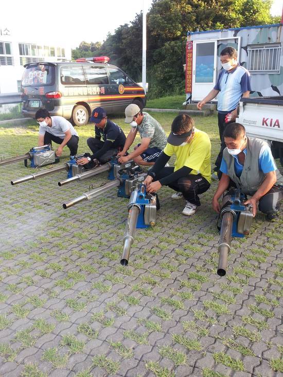 고성 갈대밭 모기 방제를 준비하는 주민들, 그러나 턱도 없다