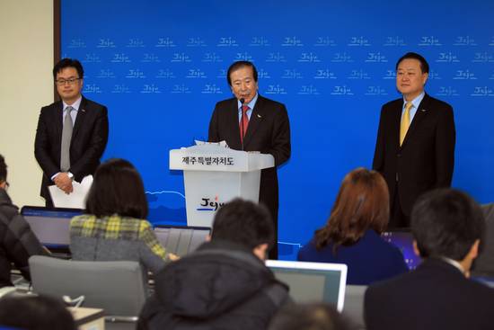 13일 제주특별자치도청 기자실에서 브리핑을 통해 2016년도 사업구상과 관련 김한욱 이사장은 취임이후 강력한 긴축과 조직쇄신을 통한 ‘생존 경영’을 내세워 JDC의 체질을 바꾸고, 제도개선 및 투자유치 방식 변경을 통해 가시적인 사업성과를 이루어냈다고 밝혔다.