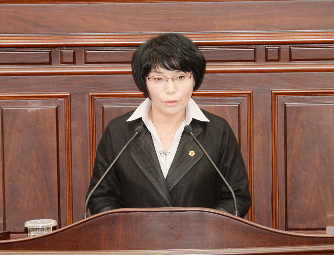 강정마을에 대해 질문하는 현정화 의원