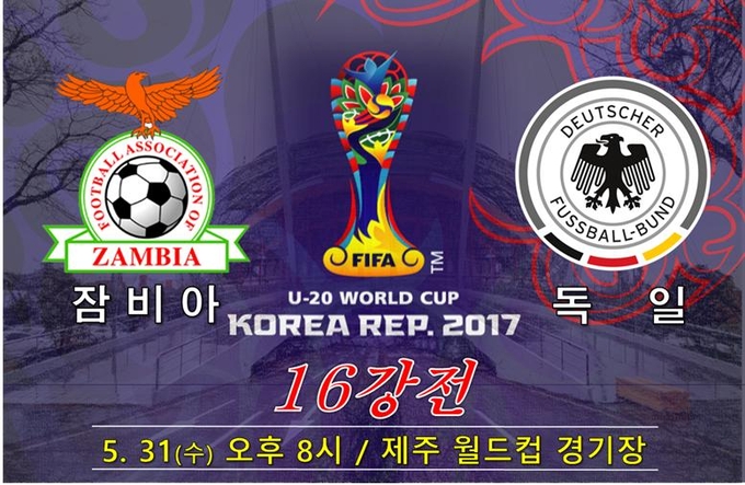 지난 5월 28일 전주와 대전에서 E조와 F조의 예선전이 끝나면서 U-20 월드컵 16강전 대진표가 확정 됐다. 제주에서는 C조 1위 잠비아와 B조 3위 독일이 제주에서 8강 진출권을 두고 격돌한다.