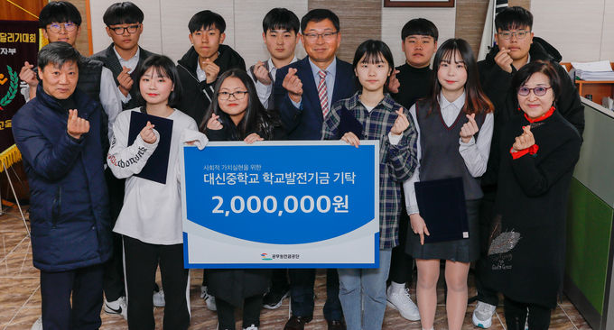 전달된 학교발전기금은 공무원연금공단 임직원이 자발적으로 조성한 사회공헌활동 기금으로 2019년 대신중학교 졸업생 10명에게 전달될 예정이다.