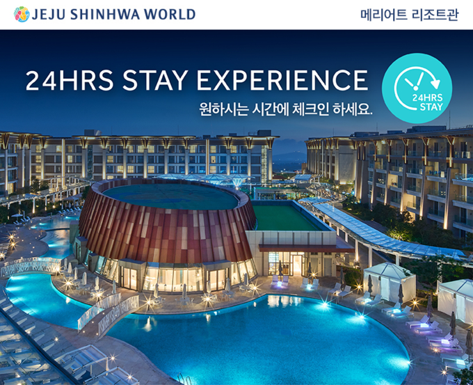 ‘24시간 스테이 익스피리언스’ 패키지는 제주신화월드 메리어트리조트관(이하 ‘메리어트리조트’) 투숙 시 체크인 시간을 기준으로 24시간 후에 체크아웃 할 수 있는 상품이다.