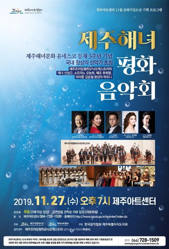 제주아트센터(소장 강정호)는 11월 문화가 있는날 기획프로그램으로 제주해녀문화 유네스코 등재3주년 기념 음악회를 개최한다.
