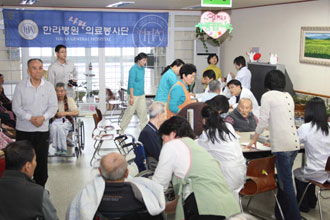 이날 봉사단에는 산부인과를 비롯한 외과, 정형외과, 내과, 영상의학과 전문의가 참여해 어르신들의 건강상태 검진 및 불편한 움직임으로 인한 여러 질병을 중점적으로 진료 하고 약도 처방했다.