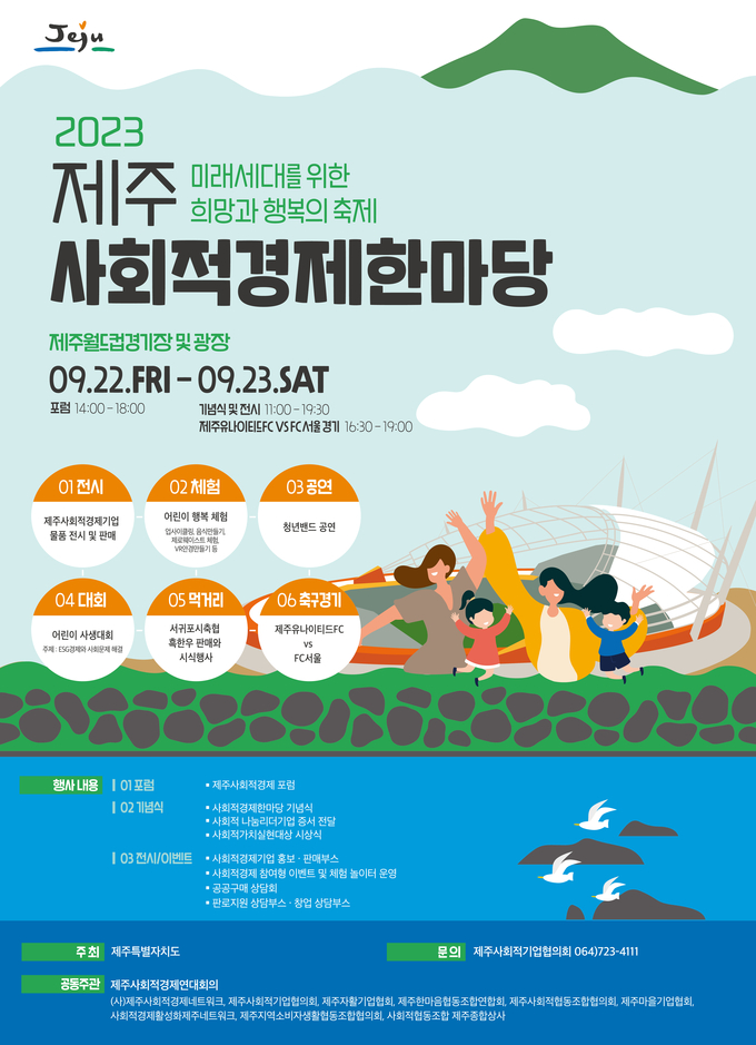 ‘2023 제주사회적경제한마당’이 오는 22일과 23일 이틀간 제주시와 서귀포시에서 진행된다.