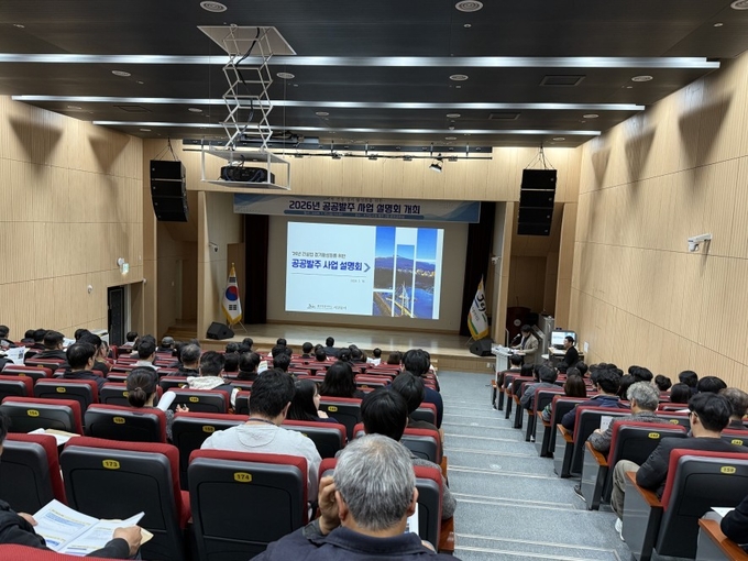 서귀포시에서는 침체된 건설경기 활성화의 발판을 마련하고자 대한건설협회(전문포함) 회원 및 건설업 면허 등록업체 종사자 등 100여 명이 참석한 가운데 ‘'26년도 공공발주 사업 설명회’를 1월 16일 14시에 서귀포시청 별관 2층 문화강좌실에서 개최하였다.